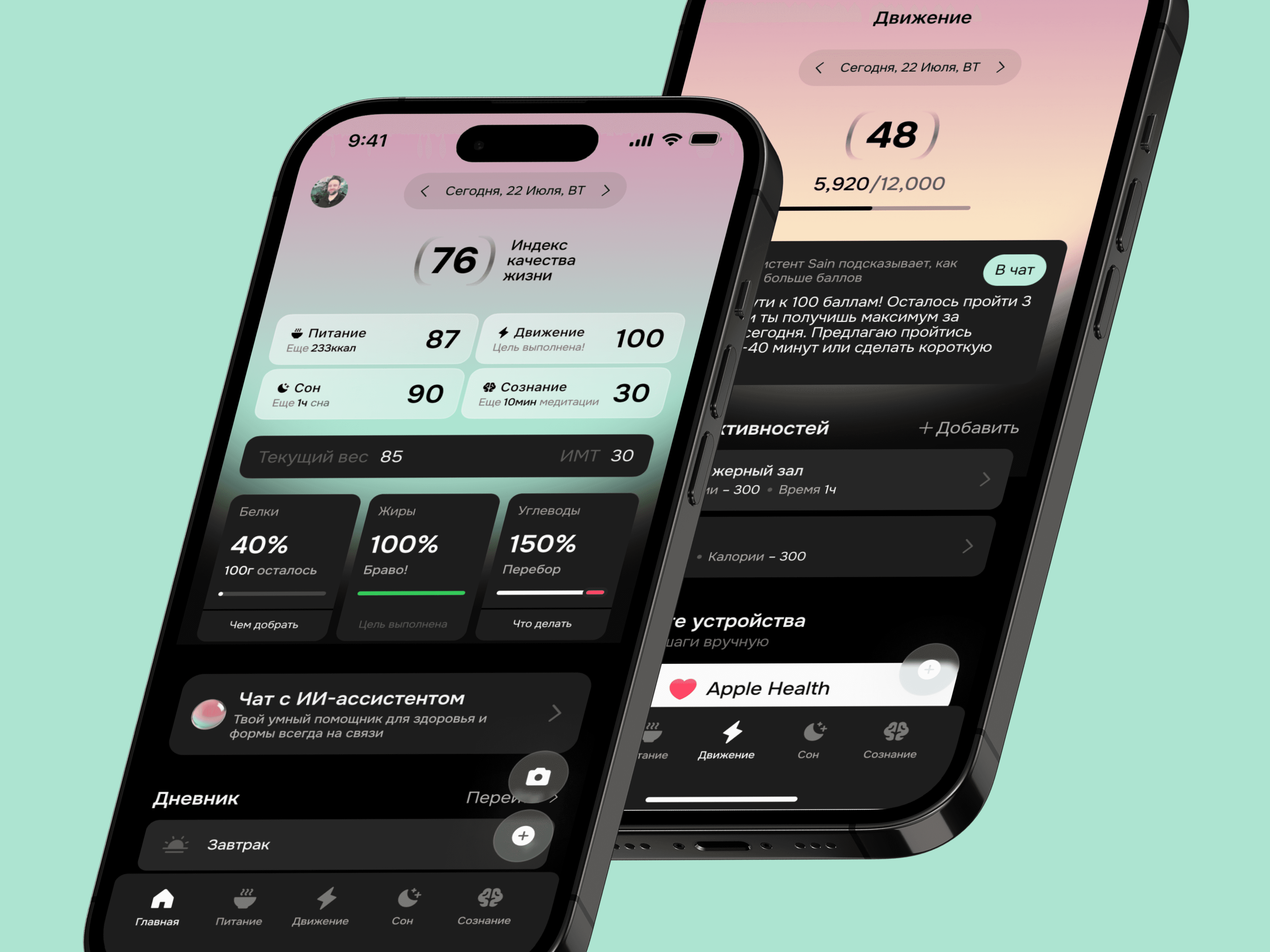 Mobile app for tracking nutrition, activity, water intake, and intermittent fasting — with a diary and macro breakdown