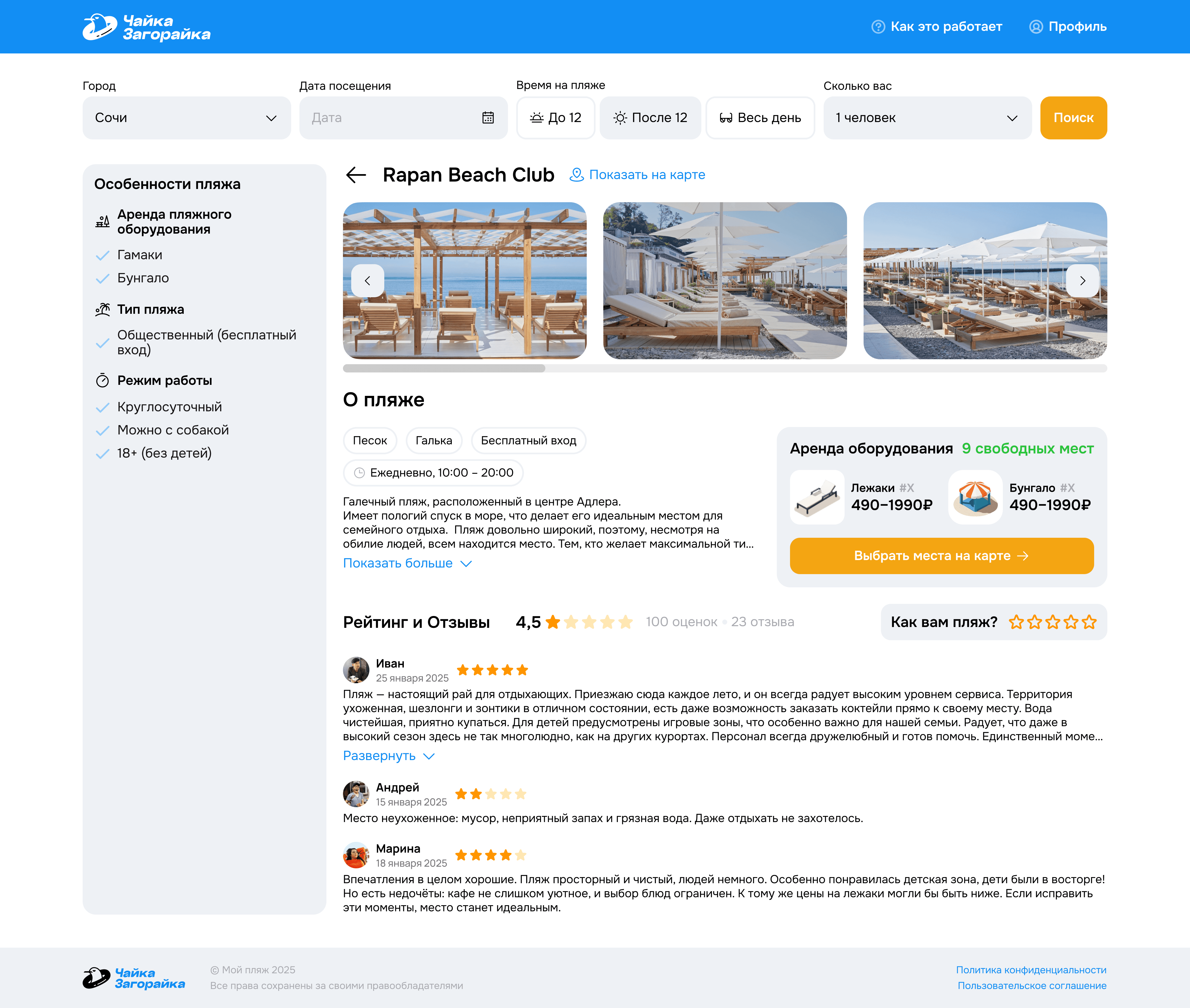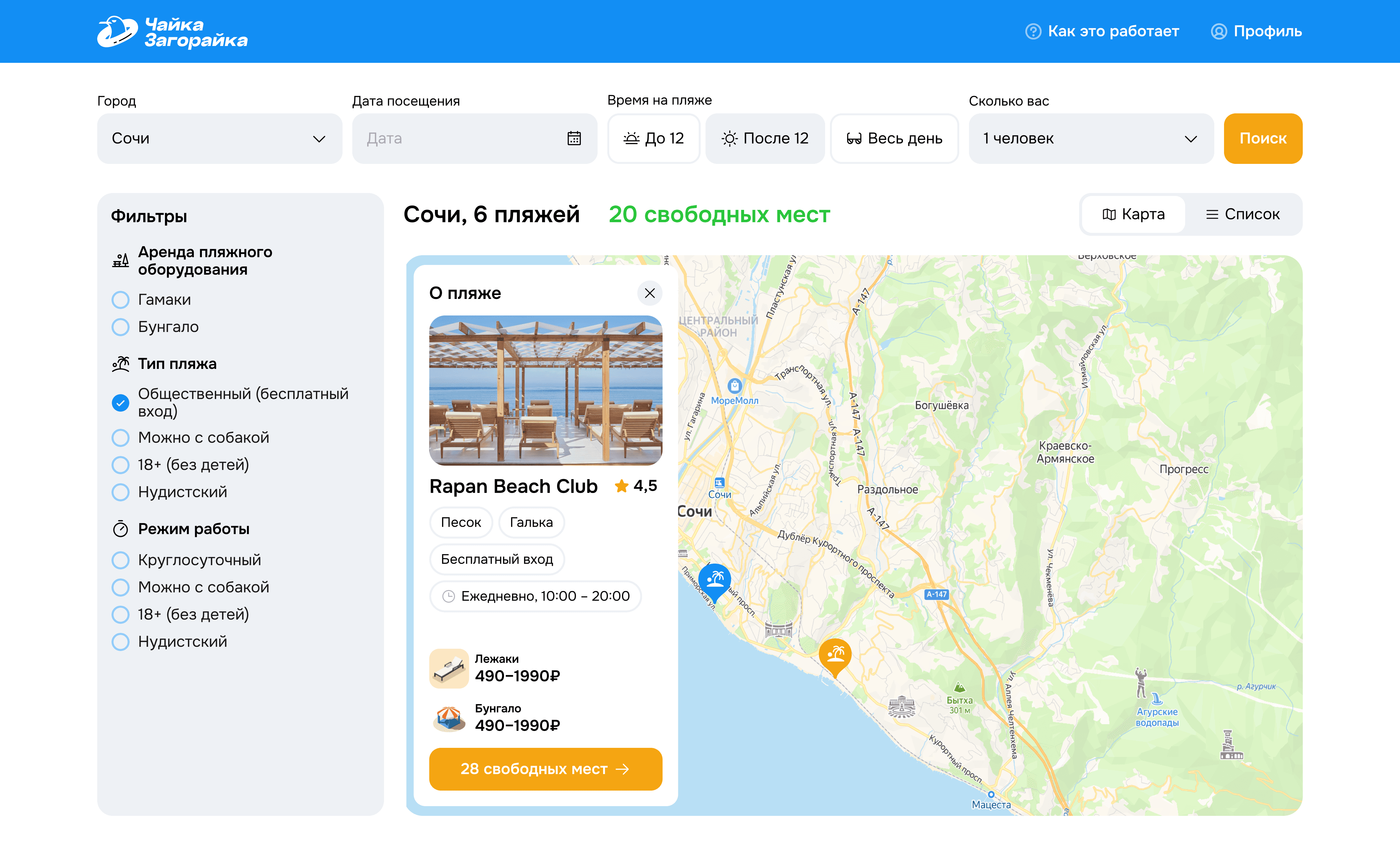 Мой пляж – Сервис поиска и бронирования свободных мест на пляже